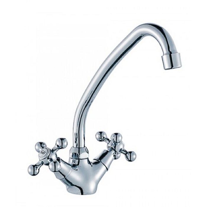Смеситель для кухни Haiba HB4519, с двумя рычагами, каждый контролирует напор воды. Аэратор в приборе поможет обеспечить равномерную подачу воды и ее относительное смягчение. Сетка в устройстве отфильтровывает различные примеси. Монтируется на шпильке. На нижнюю часть смесителя ставится резинка для того, чтобы смеситель ничего не царапал и не елозил по столешнице, далее вкручиваются шпильки в смеситель. Получившуюся конструкцию устанавливаем в отверстие, насаживаем на крепление и Классика – это модели, проверенные временем. К представленному типу смесителей относятся функциональные, красивые, надежные изделия, которые обладают традиционным оформлением. К представленной категории изделий относится классический вид приборов, которые сделаны из латуни – долговечного, прочного, надежного материала. Обычно модели этого типа покрываются специальным хромированным покрытием, и в итоге обладают безукоризненным в наиболее традиционный вариант оформления смесителя. Круглая форма позволяет выглядеть привлекательно и стильно для глаз человека. Востребованная модель, которая обладает поворотным изливом. Его возможно вращать, что существенно повышает производительность использования прибора. Данный тип приборов оснащается керамической кран-буксой. Несмотря на солидный возраст этой технологии, она все также весьма популярна ввиду собственной надежности и практичности применения. Монтаж представленной модели производится на 1 отверстие под смеситель. В комплекте идет, инструкция по установке, гарантийный талон, гибкая подводка.