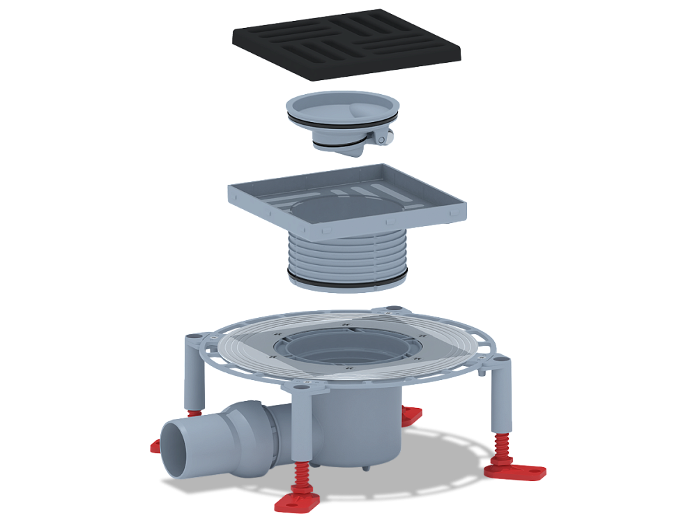 Регулируемые по высоте четыре опорные ноги позволяют точно выставить трап по уровню и упростить монтаж.