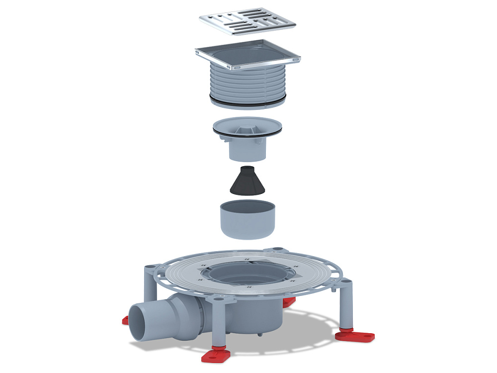 Трап для душа АНИ Пласт TVZ5602 DN50 горизонтальный регулируемый с комбинированным затвором и решёткой из нержавеющей стали 100х100 мм