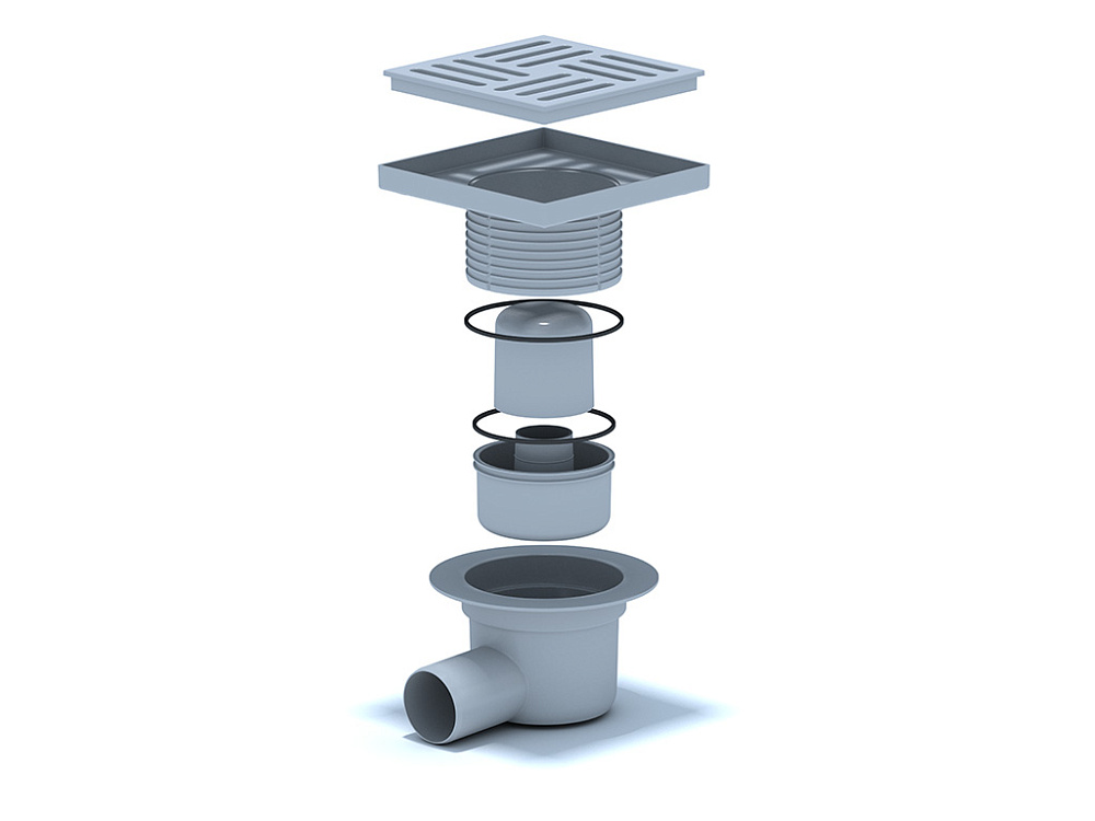 ОписаниеТрап для душа АНИ Пласт TA5610 — это горизонтальный регулируемый сливной трап с гидрозатвором, предназначенный для отвода воды из душевой комнаты в канализацию. Модель оснащена горизонтальным регулируемым выпуском из пластика диаметром 50 мм и пластиковой решёткой размером 150×150 мм. Пропускная способность составляет 45 л/мин, высота гидрозатвора — 28 мм, минимальная монтажная высота — от 75 мм. Корпус выполнен с широкой юбкой для надёжной фиксации гидроизоляции, а четыре опорные ноги с регулировкой высоты обеспечивают точный монтаж по уровню. Решётка выдерживает статическую нагрузку до 300 кг. Конструкция препятствует попаданию загрязняющих частиц в канализацию, предотвращает засоры и легко чистится.