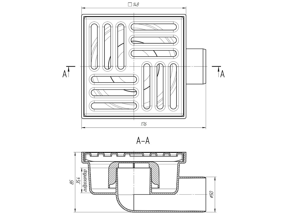 Трап для душа АНИ Пласт TA5112 горизонтальный нерегулируемый с выпуском 50 мм и решеткой из нержавеющей стали 150х150 мм