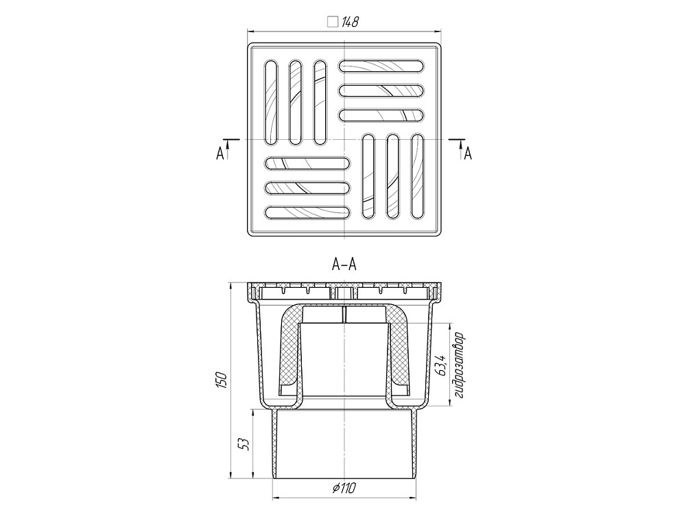 Трап для душа АНИ Пласт TA1210 вертикальный нерегулируемый с выпуском 110 мм и пластиковой решеткой 150х150 мм