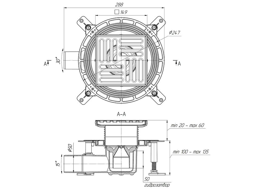Комбинированный затвор эффективно защищает от неприятных запахов из канализации.