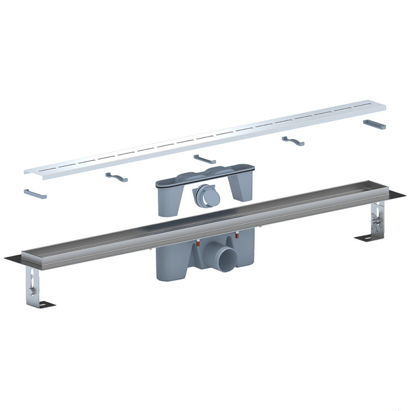 Трап линейный из нержавеющей стали АНИ Пласт TLZ2585G DN50 с комбинированным затвором и глянцевой решёткой Киль 850х65 мм
