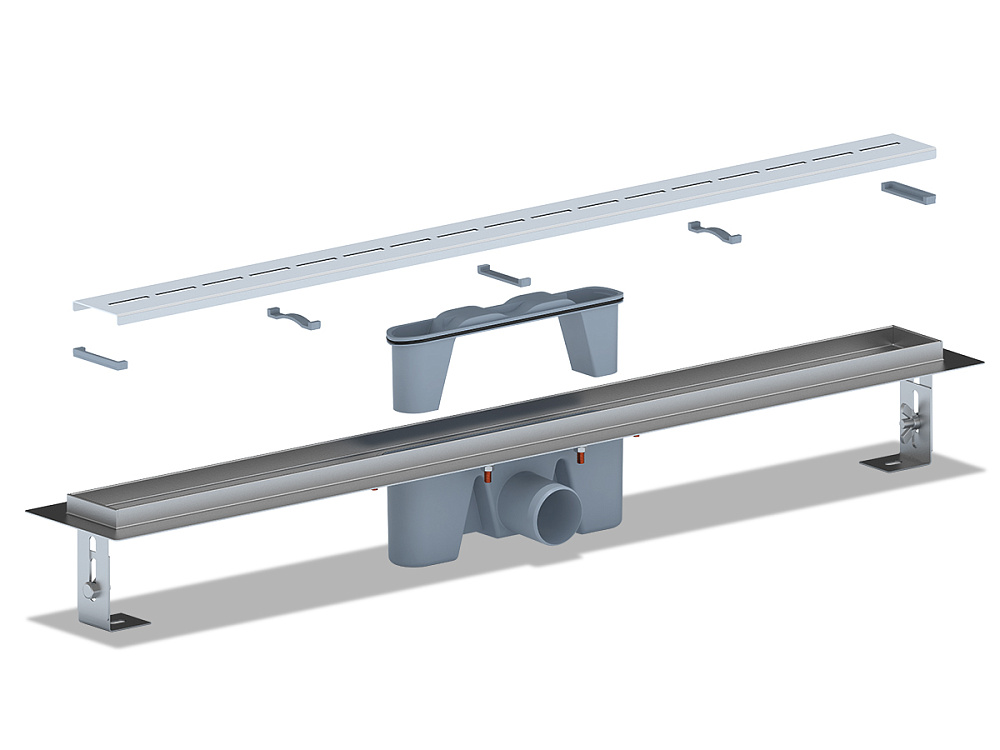 Трап линейный из нержавеющей стали АНИ Пласт TL2585M выпуск 50 мм решётка Киль матовая 850 мм