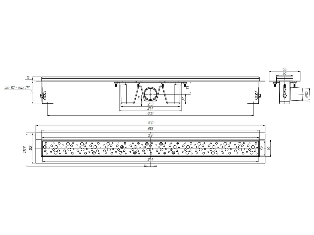 ОписаниеТрап из нержавеющей стали АНИ Пласт TL2385M длиной 850 мм с перфорированной матовой решёткой Бриз и выпуском 50 мм — это практичное и долговечное решение для просторных душевых и ванных комнат. Перфорированная решётка Бриз предотвращает скольжение и способствует эффективному отводу воды, а матовая поверхность устойчива к появлению следов и царапин. Корпус из нержавеющей стали устойчив к коррозии и воздействию бытовой химии.