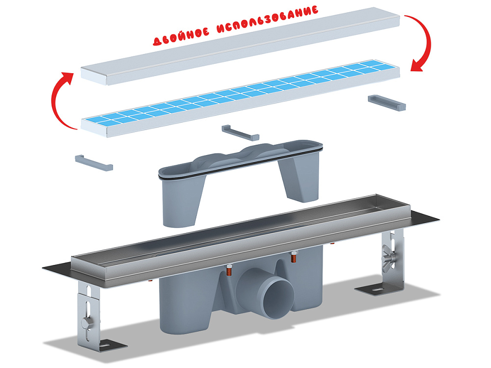 Площадка под плитку — слив становится частью пола, не нарушая дизайн.