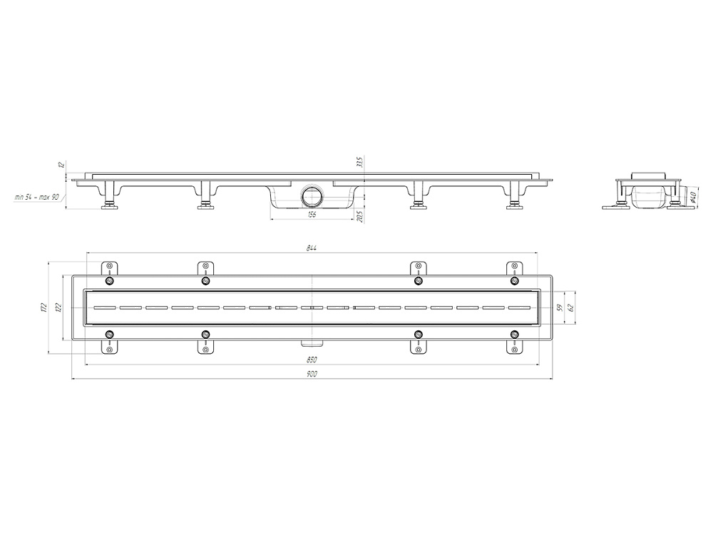 Трап линейный пластиковый АНИ Пласт TL1585M выпуск 40 мм решётка Киль матовая нержавеющая сталь 850 мм