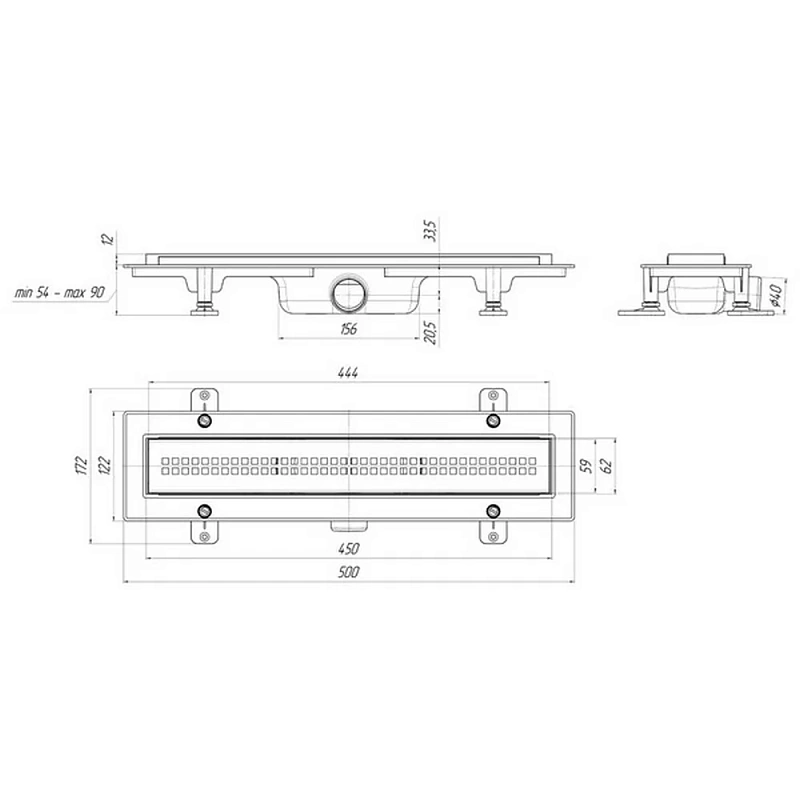 Трап линейный пластиковый АНИ Пласт TL1245G выпуск 40 мм решётка Риф глянцевая нержавеющая сталь 450 мм