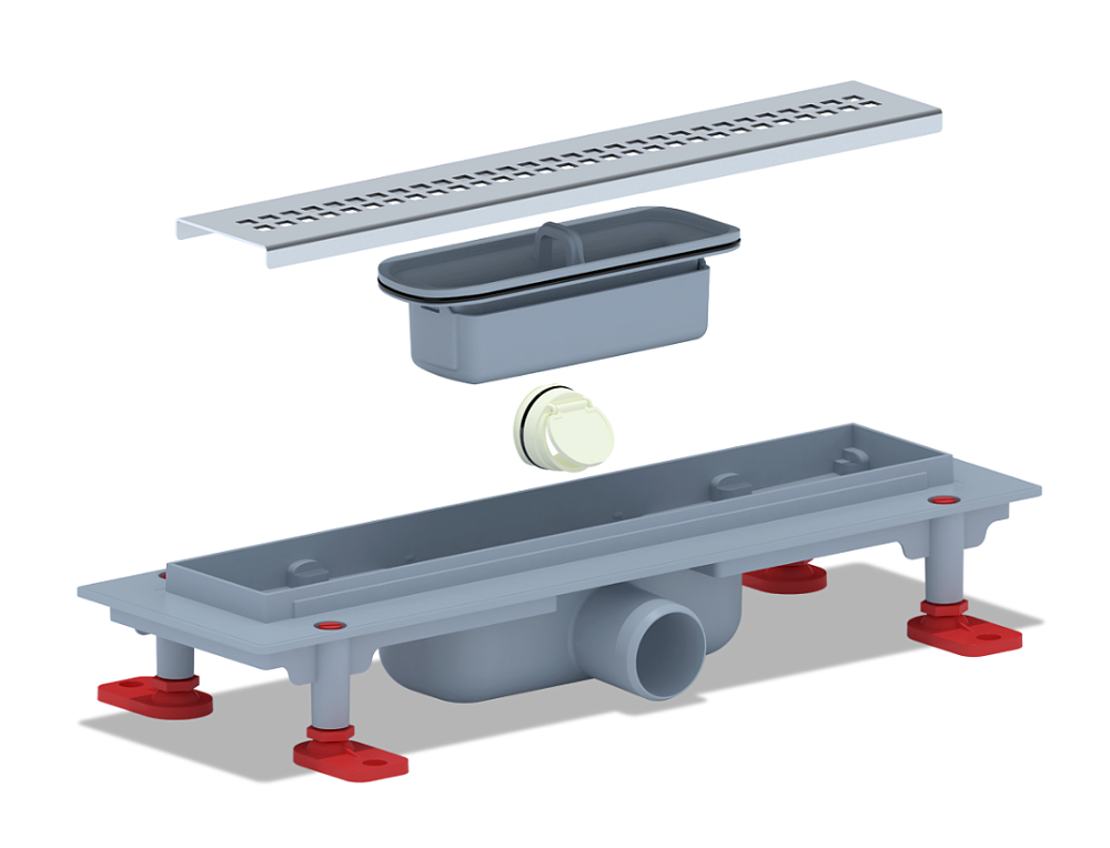 Трап оснащён комбинированным затвором, который сочетает преимущества сухого и гидрозатвора: водяной столб и заслонка в сифоне надёжно блокируют неприятные запахи из канализации даже при пересыхании. Пропускная способность устройства — до 35 литров в минуту, что обеспечивает быстрый отвод воды даже при интенсивном использовании душа. Регулируемые ножки позволяют выбрать оптимальную высоту монтажа в диапазоне от 55 до 90 мм, а установка под плитку обеспечивает аккуратный внешний вид пола.