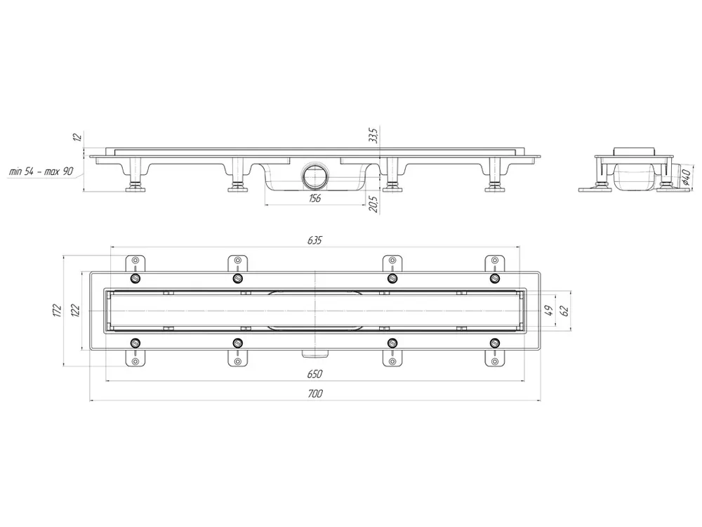 Трап линейный пластиковый АНИ Пласт TL1165G выпуск 40 мм решётка Штиль глянцевая нержавеющая сталь 650 мм
