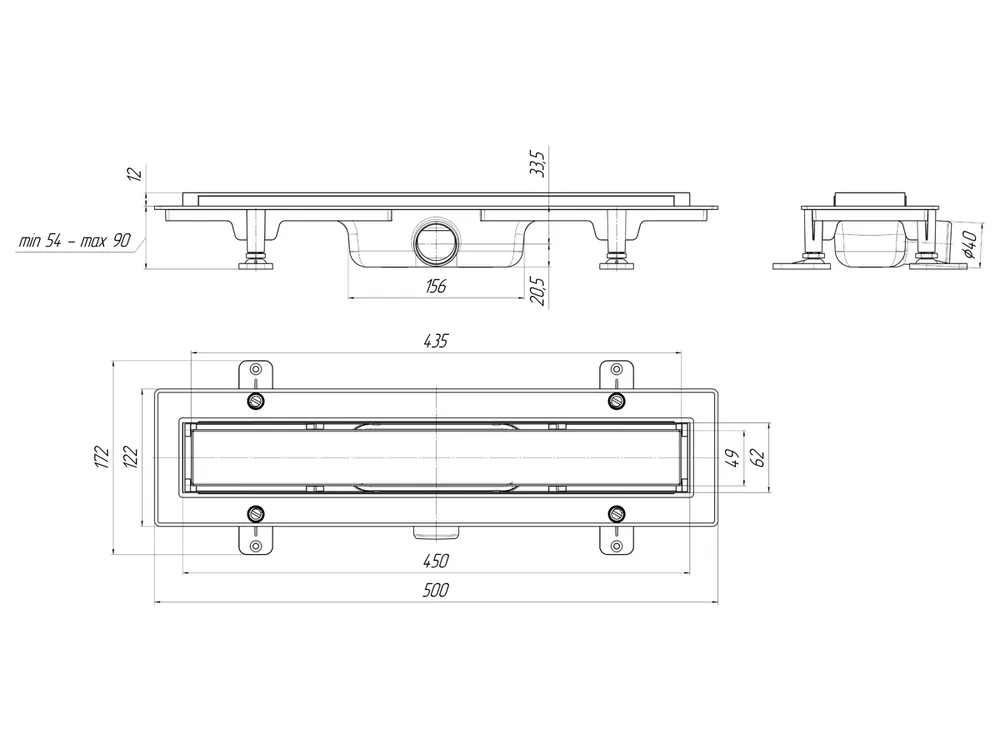 Трап линейный пластиковый АНИ Пласт TL1045 выпуск 40 мм решётка МОЛ под плитку 450 мм