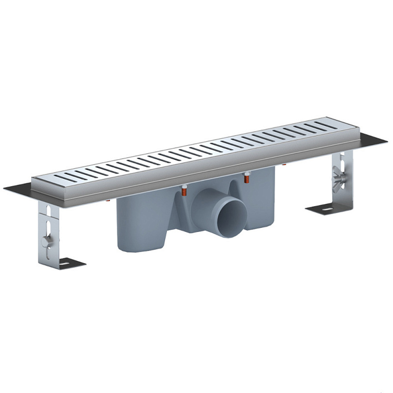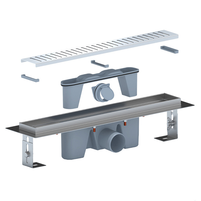 Трап линейный из нержавеющей стали АНИ Пласт TLZ2445G DN50 с комбинированным затвором глянцевой решёткой Бимс 450х65 мм