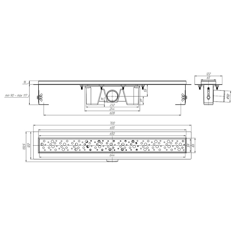 Преимущества линейного душевого трапа АНИ Пласт с решёткой Бриз матовый: