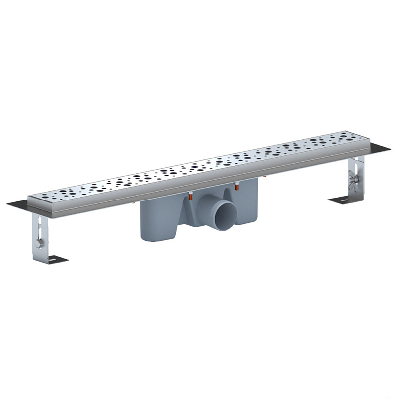ОписаниеЛинейный металлический трап АНИ Пласт с комбинированным затвором и стильной перфорированной решеткой Бриз из глянцевой нержавеющей стали предназначен для эффективного удаления воды в душевых и ванных комнатах. Этот трап идеально подходит для установки в помещениях с повышенной влажностью, обеспечивая надежное и быстрое отведение воды, что особенно важно для поддержания чистоты и комфорта.