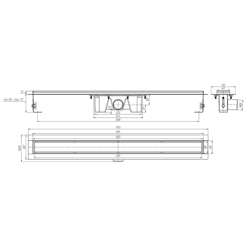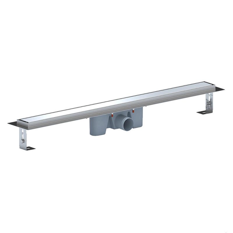 Трап линейный из нержавеющей стали АНИ Пласт TLZ2185G DN50 с комбинированным затвором глянцевой решёткой Штиль 850х65 мм