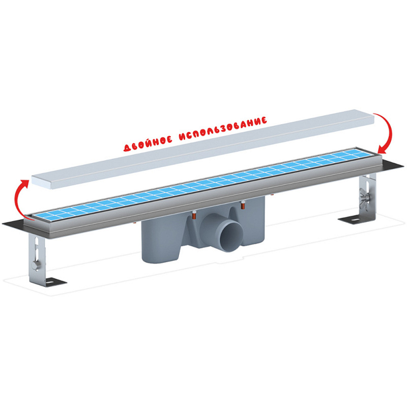 Трап линейный из нержавеющей стали АНИ Пласт TLZ2065 DN50 с комбинированным затвором матовой решёткой под плитку МОЛ 650х65 мм