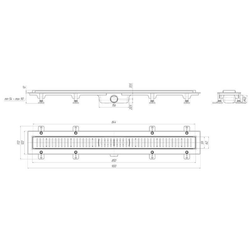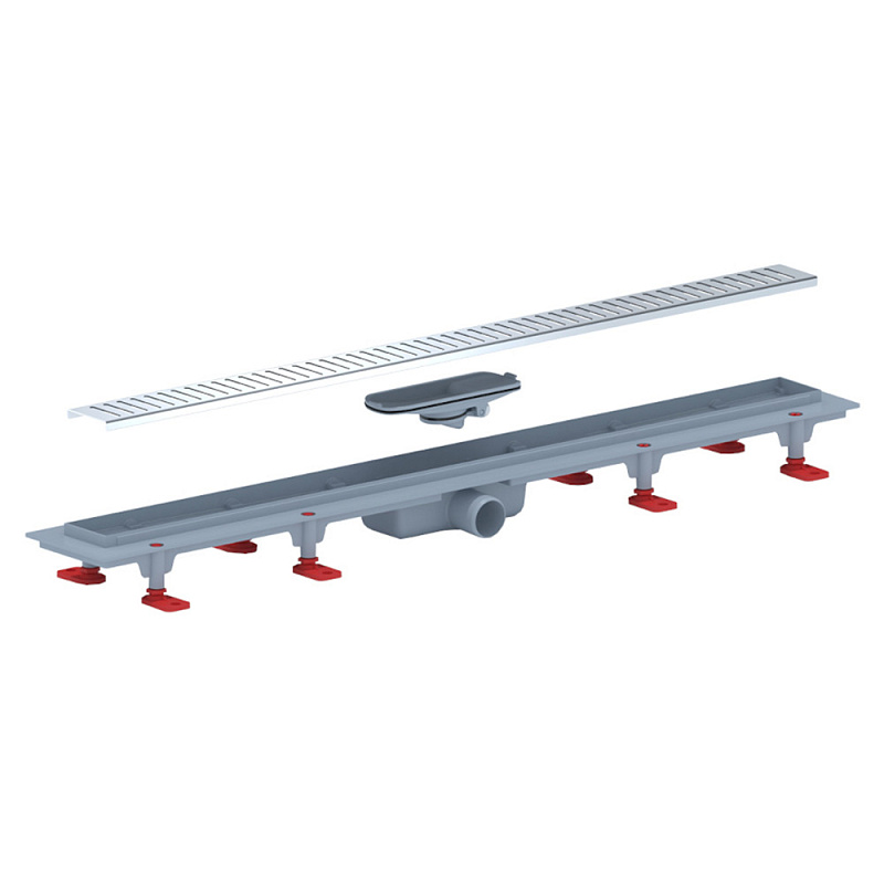 Трап линейный пластиковый АНИ Пласт TLQ1485G DN40 с сухим затвором и глянцевой решёткой Бимс 850х62 мм