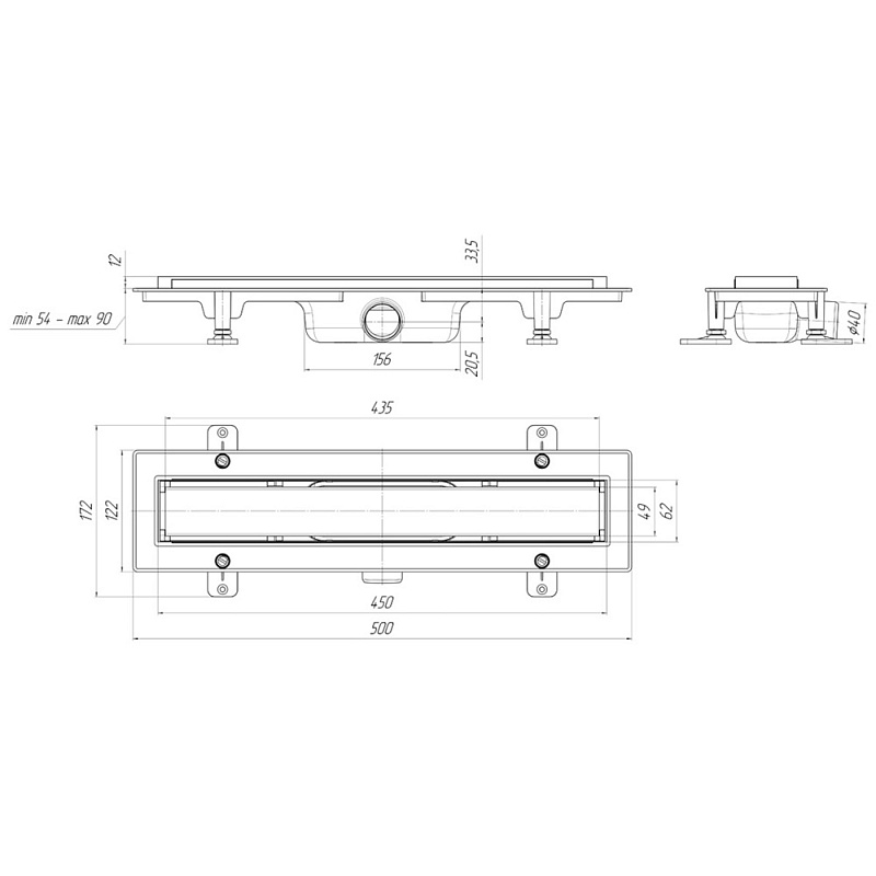 Трап линейный пластиковый АНИ Пласт TLQ1145M DN40 с сухим затвором и матовой решёткой Штиль 450х62 мм