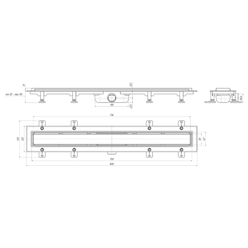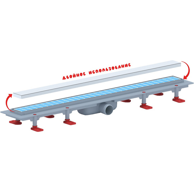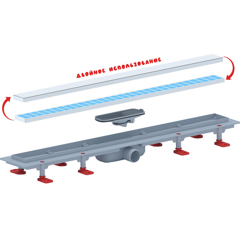 Трап линейный пластиковый АНИ Пласт TLQ1075 DN40 с сухим затвором и матовой решёткой под плитку МОЛ 750х62 мм