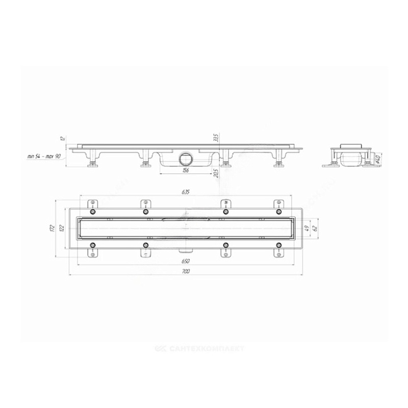 Трап линейный пластиковый АНИ Пласт TLQ1065 DN40 с сухим затвором и матовой решёткой под плитку МОЛ 650х62 мм