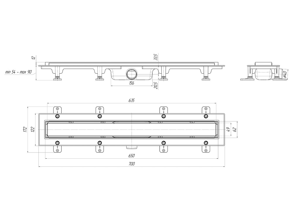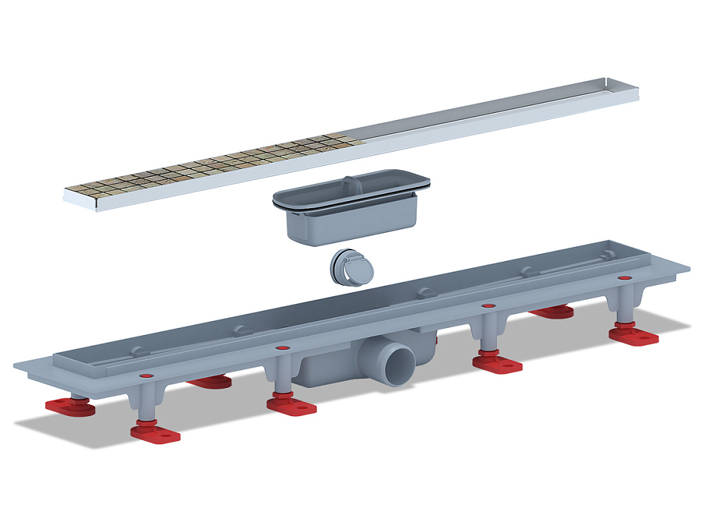 Трап линейный пластиковый АНИ Пласт TL1065 выпуск 40 мм решётка МОЛ под плитку 650 мм