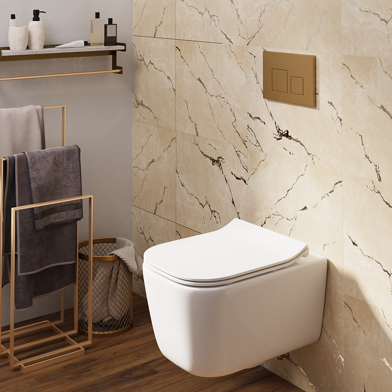 Золото матовое — мягкий, благородный тон, который привносит тепло, глубину и стиль. Матовое покрытие делает поверхность спокойной, без бликов, что придаёт дизайну ванной комнаты сдержанность и элегантность. Такая клавиша отлично впишется в интерьер с натуральными материалами — дерево, камень, текстуру мебели — а также в контрастные решения с темной или светлой плиткой.