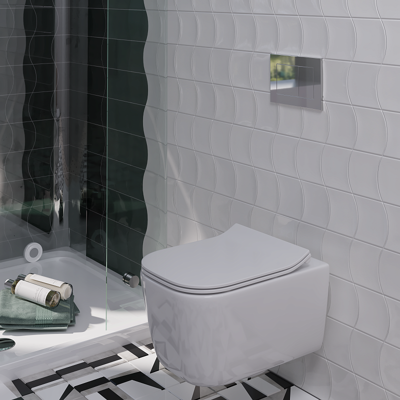 Форма клавиши — строгий прямоугольник с чёткими геометрическими линиями, что придаёт панели аккуратность и современную лаконичность. Наличие двух кнопок обеспечивает двухрежимный смыв (3 л / 6 л), что позволяет оптимизировать расход воды: меньший объём для повседневного использования и больший — при необходимости полного смыва. Это экономично, гигиенично и соответствует трендам в устойчивом потреблении ресурсов.
