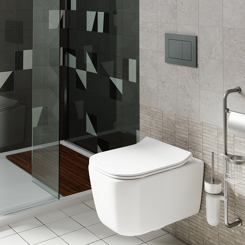 Цвет «графит матовый» — это сбалансированный тёмно-серый оттенок со слегка металлическим отливом, который выглядит элегантно и сдержанно. Матовое покрытие поглощает блики, создаёт ощущение глубины и делает клавишу визуально спокойной, но выразительной. Такой цвет отлично сочетается с плиткой в тёмных, натуральных или индустриальных оттенках, с металлическими аксессуарами и современными стеклянными поверхностями.