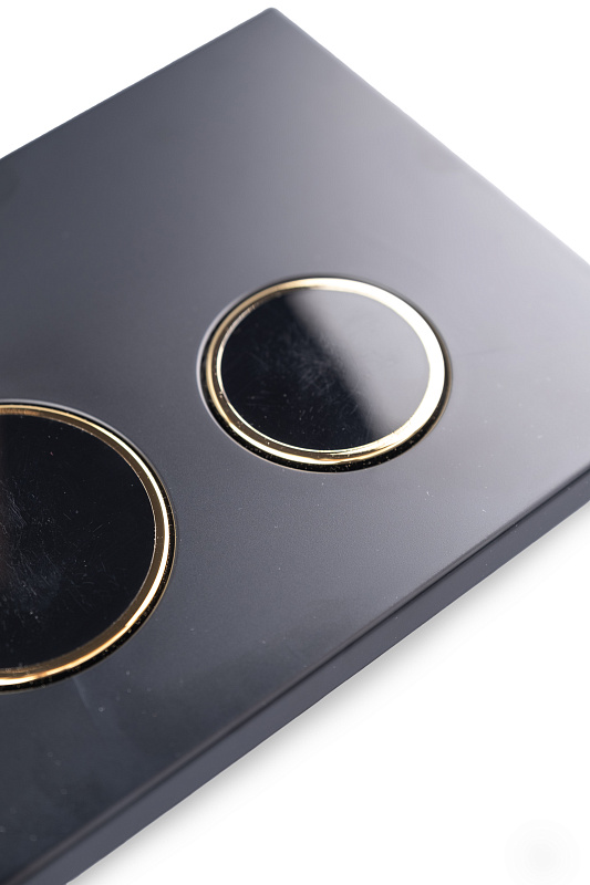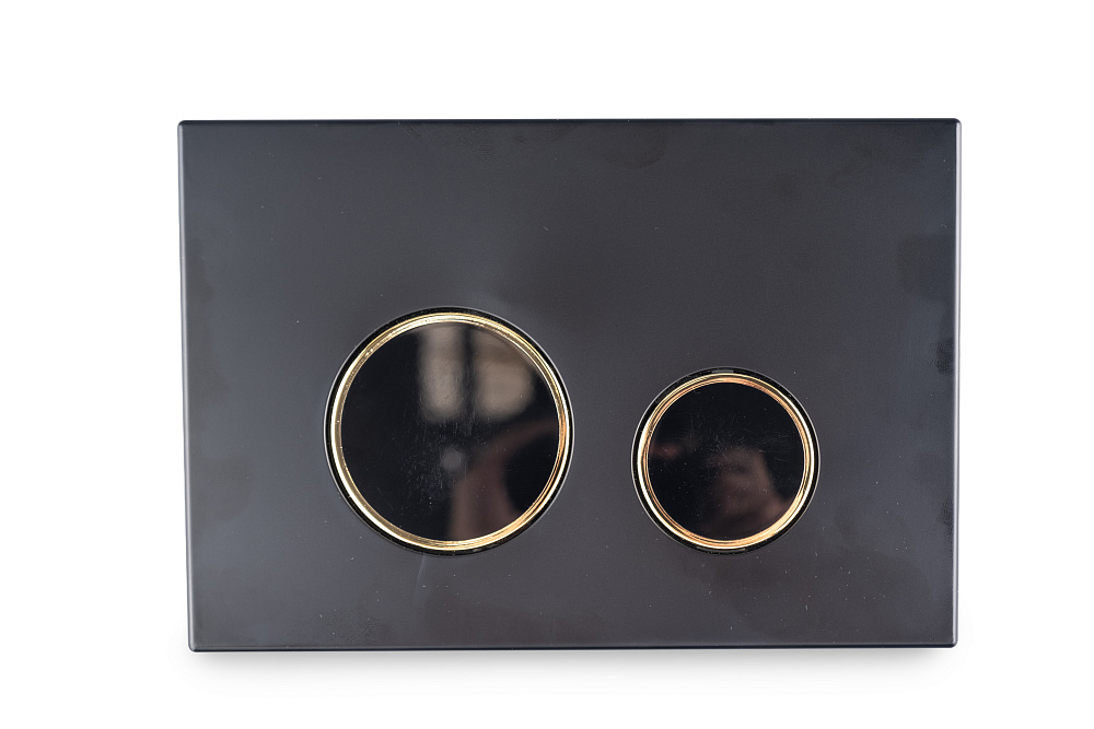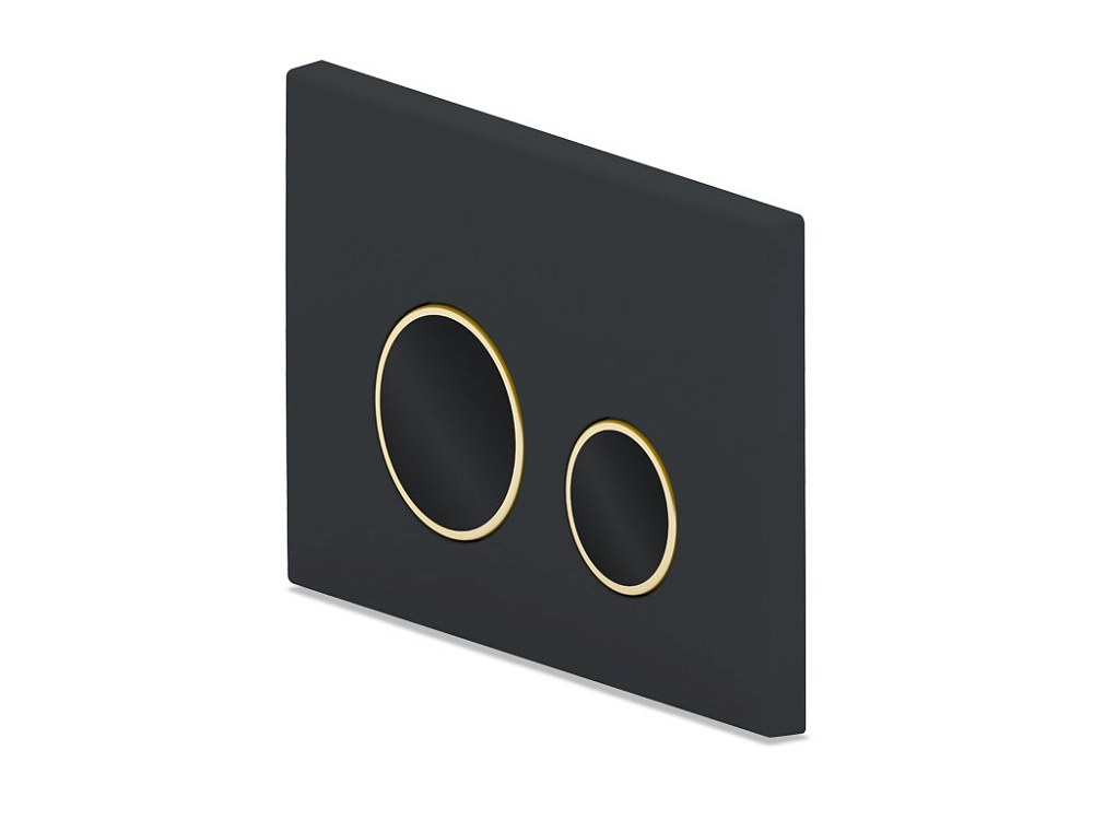 Клавиша АНИ Пласт для системы скрытой установки унитаза черная матовая, обод золото, клавиша черный глянец WP2353G