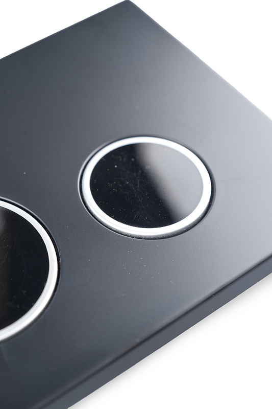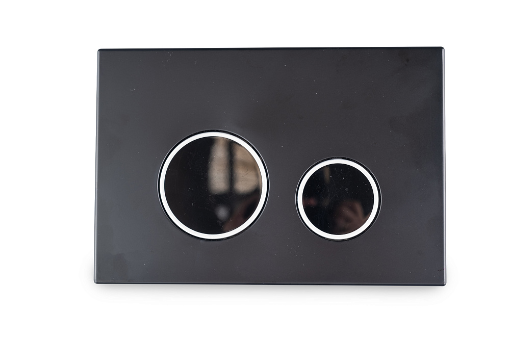 Клавиша АНИ Пласт для системы скрытой установки унитаза черная матовая, обод сатин, клавиша черный глянец WP2343G