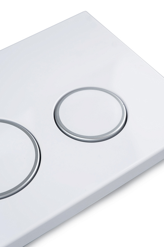 Клавиша поддерживает двойной режим смыва, обеспечивая возможность экономии воды. Корпус изготовлен из прочного ABS-пластика, устойчивого к царапинам, загрязнениям и бытовой химии. Механизм отличается плавным нажатием, четкой фиксацией и простым монтажом на фронтальную панель инсталляции.