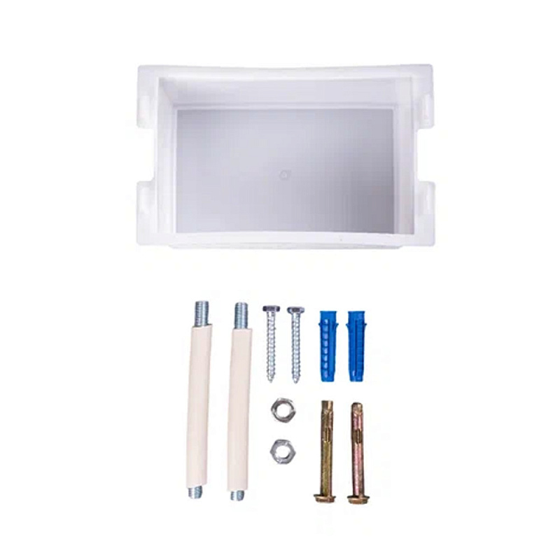 металлическая рама с нижними и верхними крепёжными элементами; комплект крепления инсталляции; заглушка для трубы 50 мм; заглушка для трубы 110 мм; картонный короб; паспорт с инструкцией по монтажу и эксплуатации. -