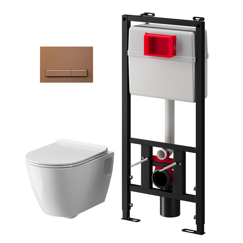 Набор инсталляции 50 см АНИ Пласт WN5 1488 Art с безободковым унитазом, с сиденьем микролифт, медь матовая WP1488