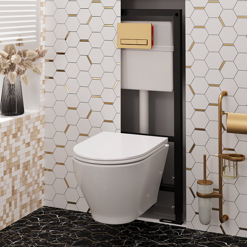 Комплект поставляется полностью укомплектованным: рама, бачок, клавиша смыва, чаша и сиденье — все элементы подобраны, проверены на совместимость и выполнены в единой цветовой гамме. Это избавляет от необходимости подбора и согласования отдельных деталей, экономит время и исключает риск ошибок при монтаже.