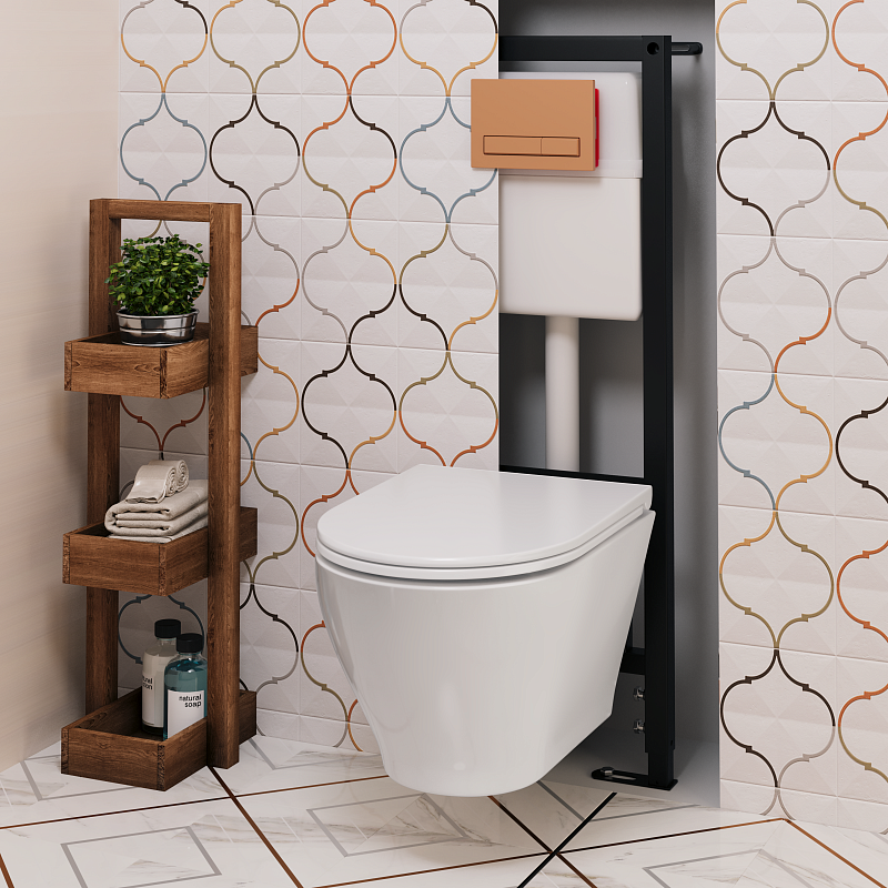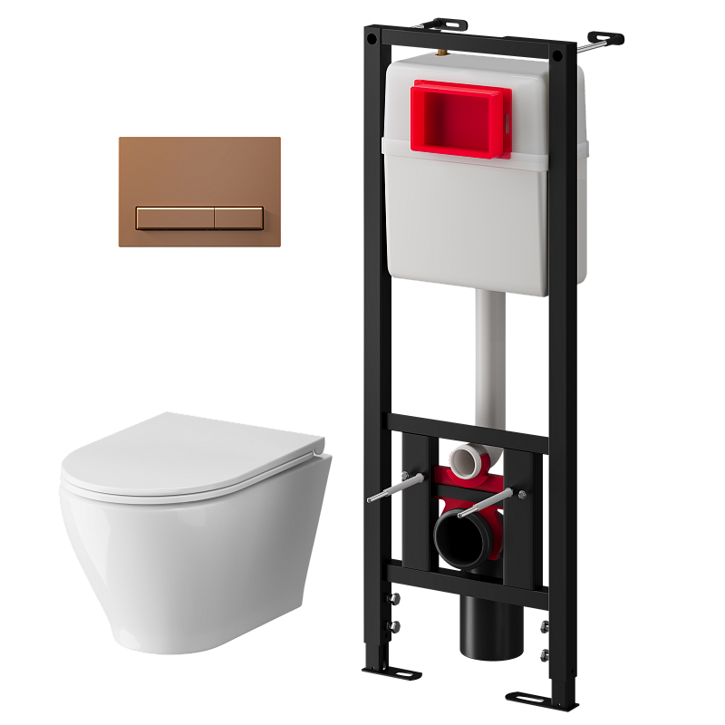 Набор инсталляции 40 см АНИ Пласт WN4 1488 Breeze с безободковым унитазом, с сиденьем микролифт, медь матовый клавишей WP1488