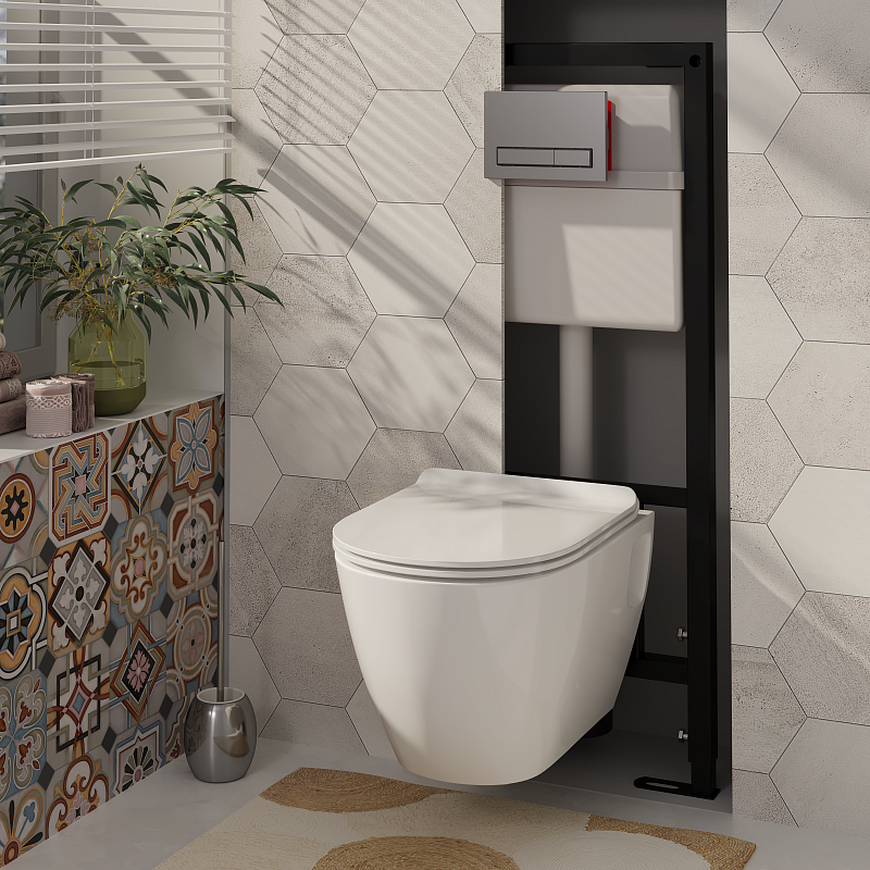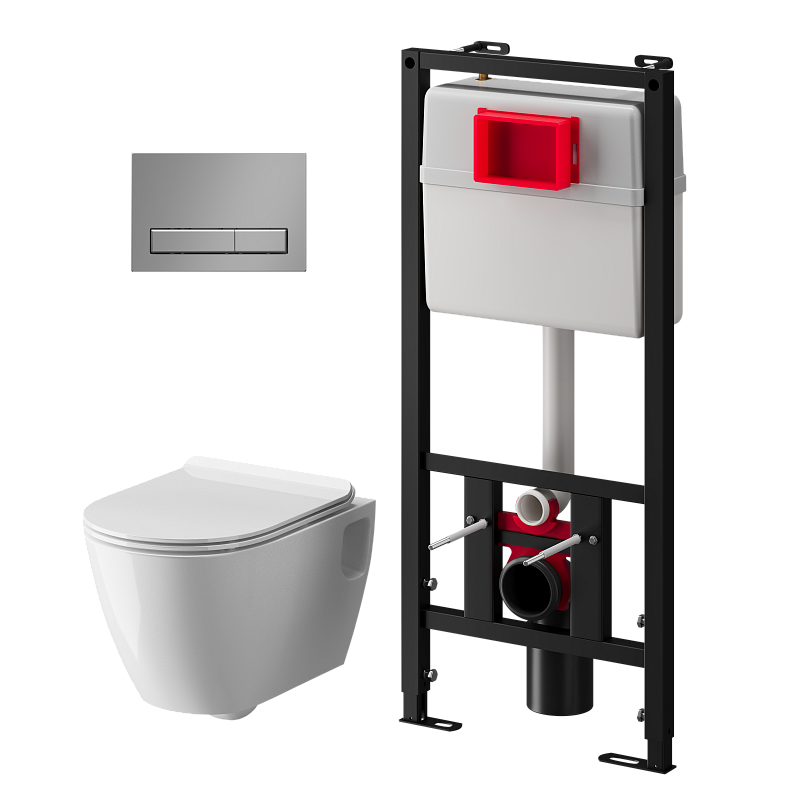 Набор инсталляции 50 см АНИ Пласт WN5 1411 Art с безободковым унитазом, с сиденьем микролифт, хром матовый клавишей WP1411