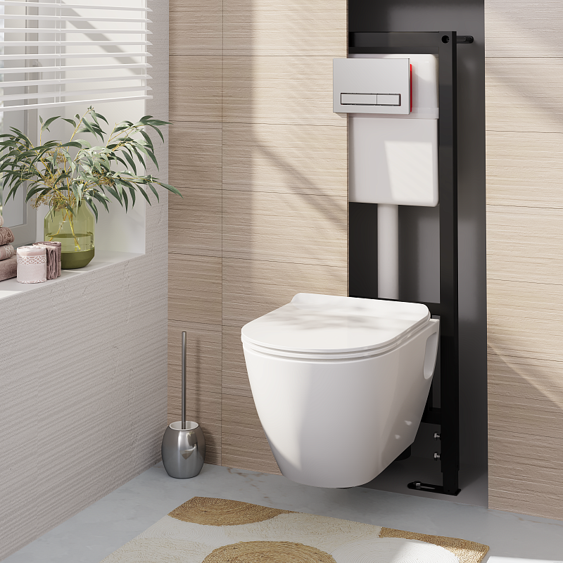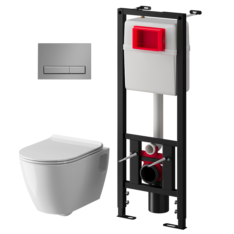 Набор инсталляции 40 см АНИ Пласт WN4 1411 Art с безободковым унитазом, с сиденьем микролифт, хром матовый клавишей WP1411