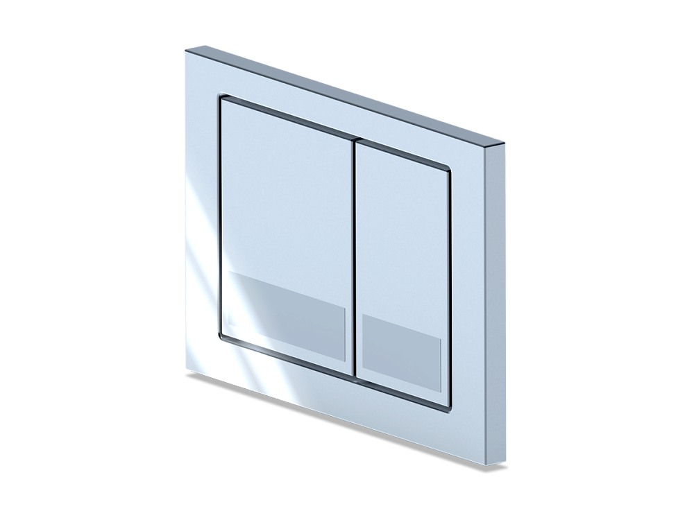 Стильная квадратная клавиша смыва в глянцевом хромированном исполнении, гармонично вписывающаяся в любой интерьер.