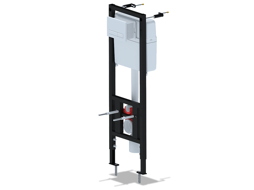 Монтаж: инсталляция крепится к капитальной стене с помощью 4 точек (2 в пол, 2 в стену), после чего конструкция зашивается влагостойким гипсокартоном и декорируется плиткой. Обслуживание арматуры осуществляется через клавишу смыва.