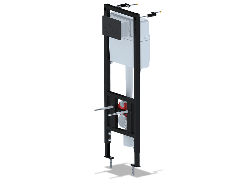 Монтаж: инсталляция крепится к капитальной стене с помощью 4 точек (2 в пол, 2 в стену), после чего конструкция зашивается влагостойким гипсокартоном и декорируется плиткой. Обслуживание арматуры осуществляется через клавишу смыва.