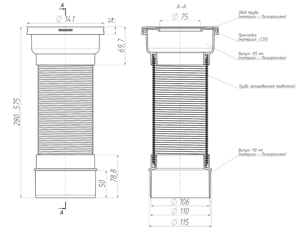 ОписаниеУдлинитель гибкий гофрированный для унитаза K921 с металлической спиралью выпуск 110 мм предназначен для присоединения унитазов к системе канализации.