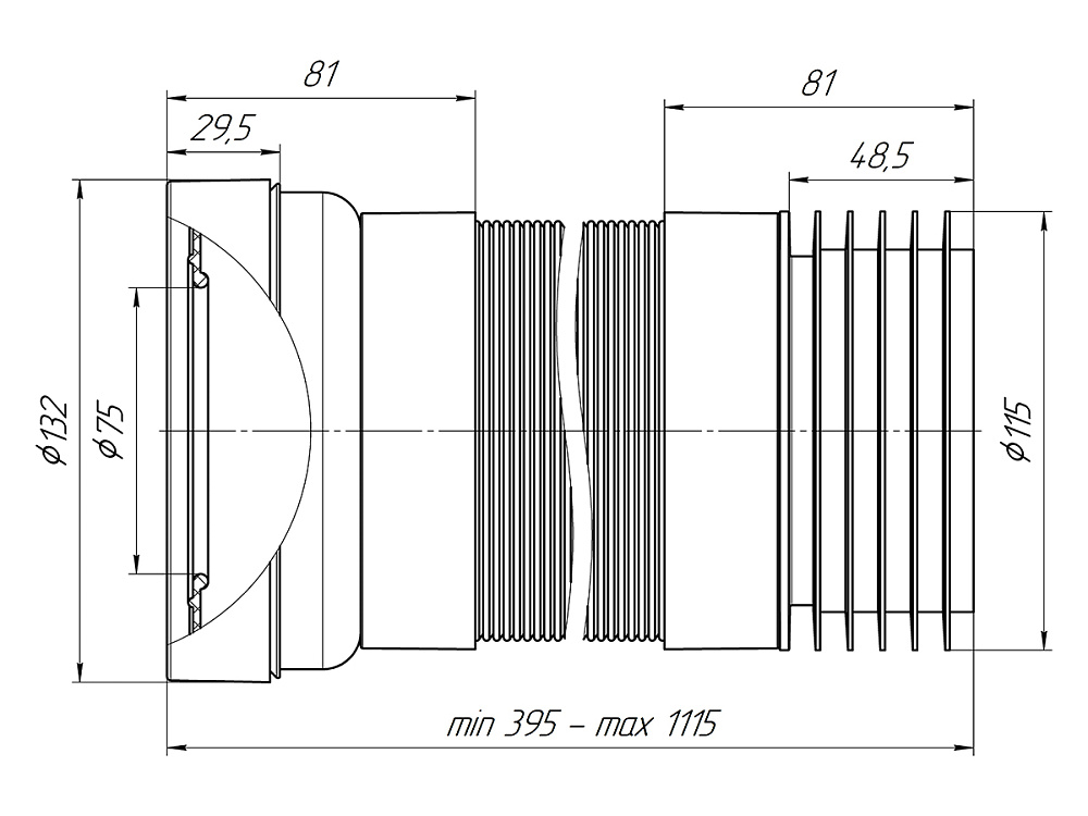 Максимальный диапазон длины обеспечивает установку при значительном удалении канализационного стояка.