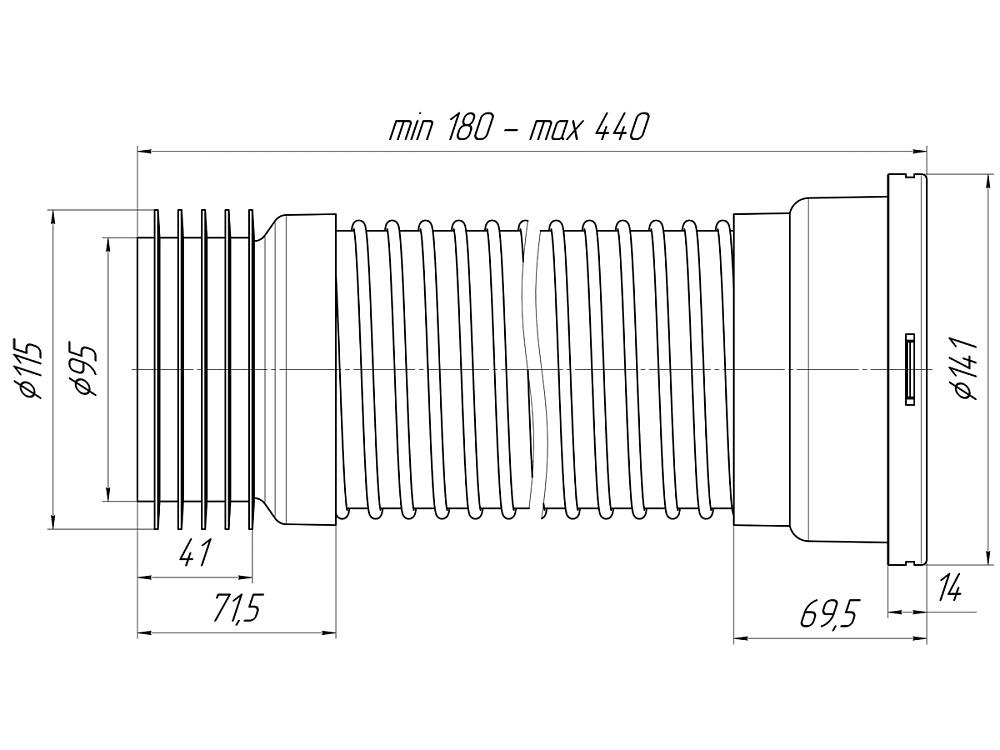 ОписаниеУдлинитель гибкий для унитаза K518 армированный обратного сжатия предназначен для подключения унитаза к канализации. Диапазон длины: 180-440 мм.