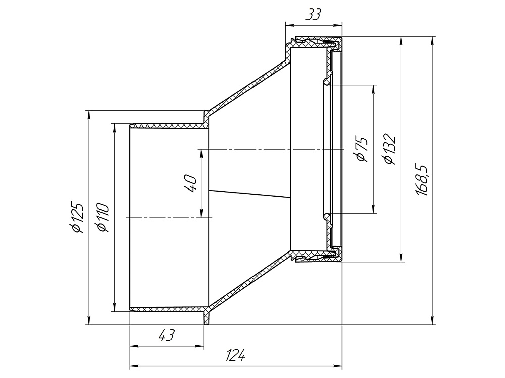 Эксцентрик жесткий 40 мм с выпуском 110 мм
