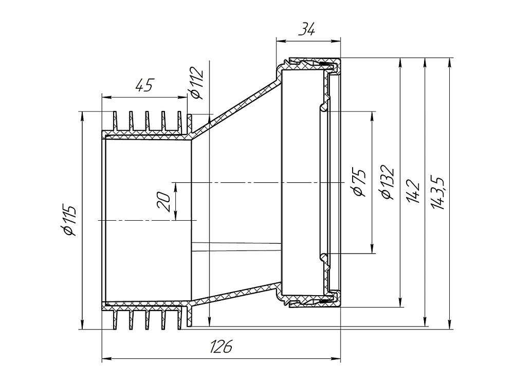 Эксцентрик жесткий 20 мм c выпуском 110 мм