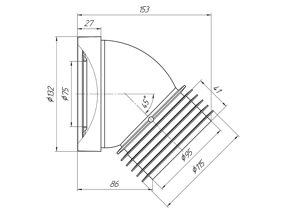 Угол 45° для значительного изменения направления выпуска унитаза.